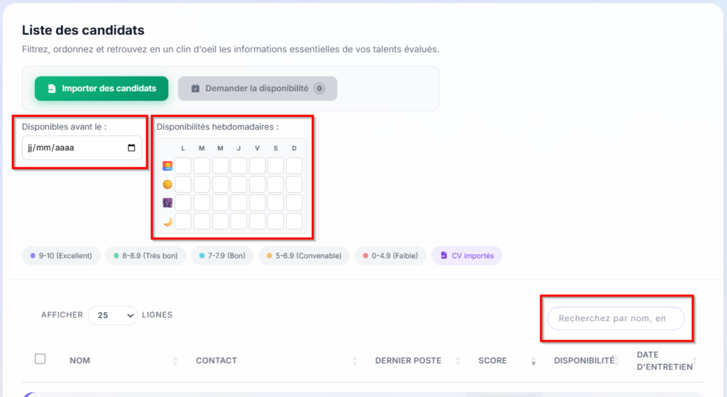 Note : il n’est pas recommandé d’utiliser la fonction « Demander la disponibilité » pour les candidats ayant été importés, mais plutôt de les inviter à passer un entretien dans le cadre d’une campagne de recrutement ouverte comme indiqué ci-dessous :