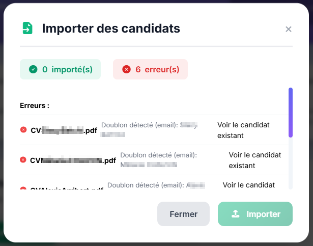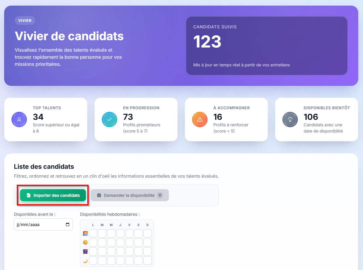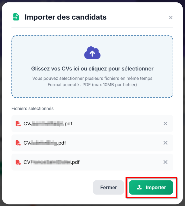 Pour importer des CV dans le vivier :